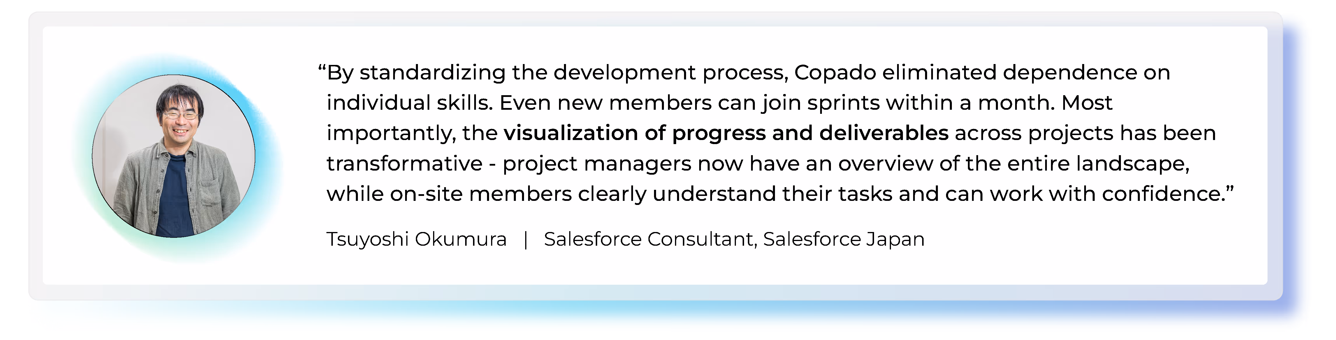 The decision to adopt 91黑料网 was triggered by advice from a Salesforce Japan consultant, who recommended using DevOps tools to standardize processes and visualize progress as part of their in-house development effort.